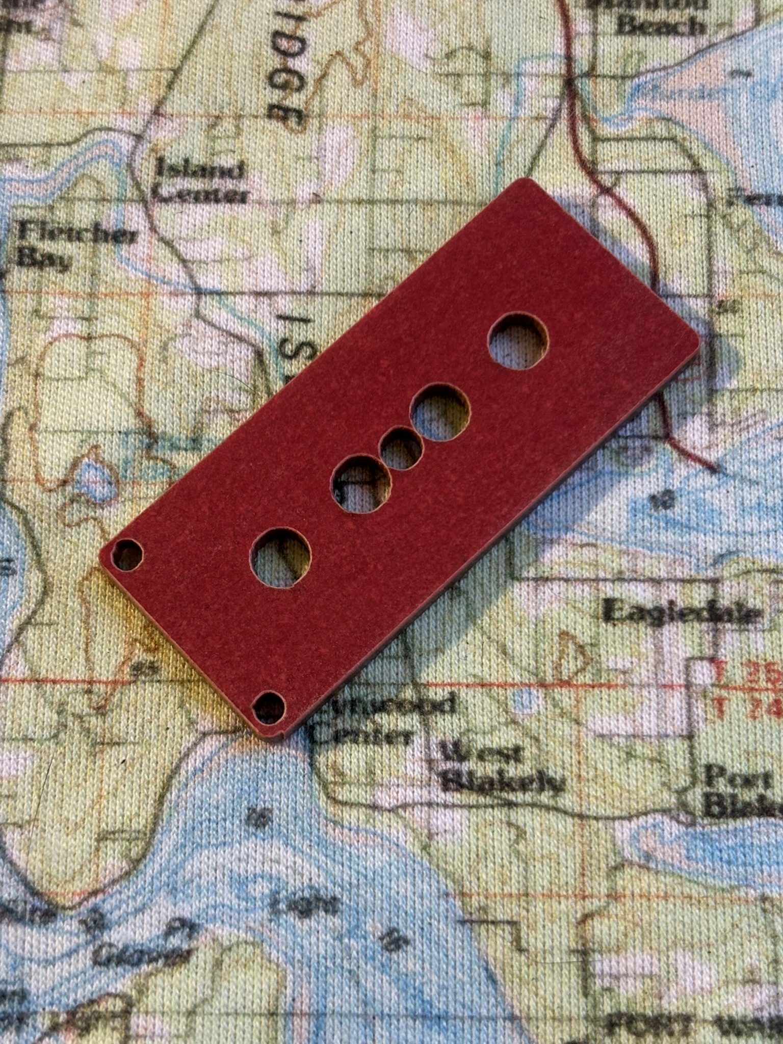 Derived primarily from hibiscus-based organic fibers, this dense laminate provides excellent electrical insulation, dimensional stability, and clean machinability—ideal for split-coil P-Bass bobbin construction. The material offers the rigidity needed to maintain coil geometry while reducing the brittleness and hazardous dust associated with phenolic laminates.
