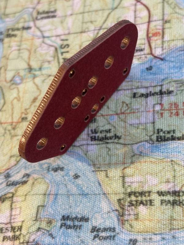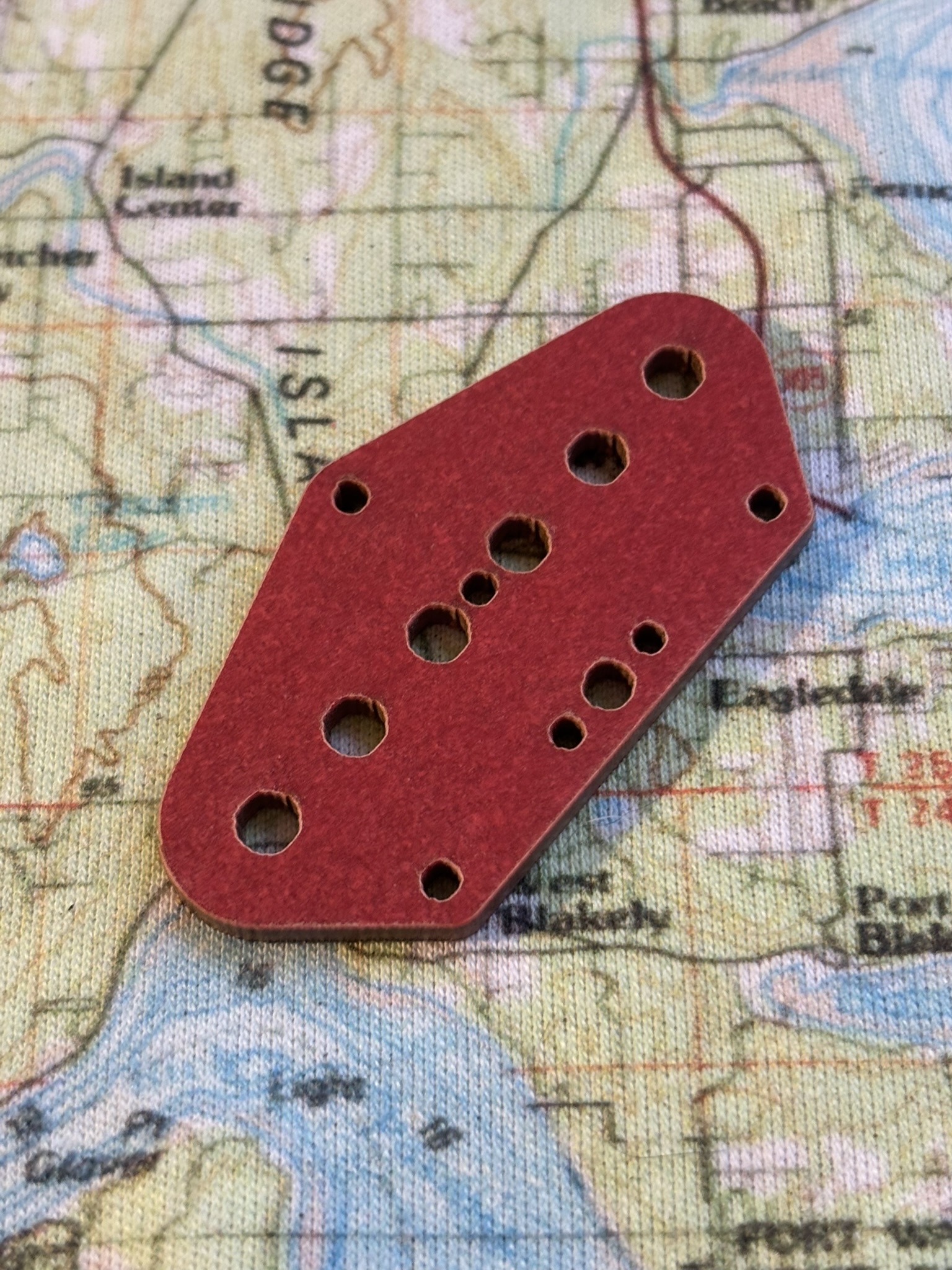 Our Telecaster 2.5mm Bridge Flatwork – Bottom is CNC-cut from HyBoard a plant-based bio-fiber composite engineered to provide a durable, electrically insulating foundation for Telecaster neck pickup bobbins.